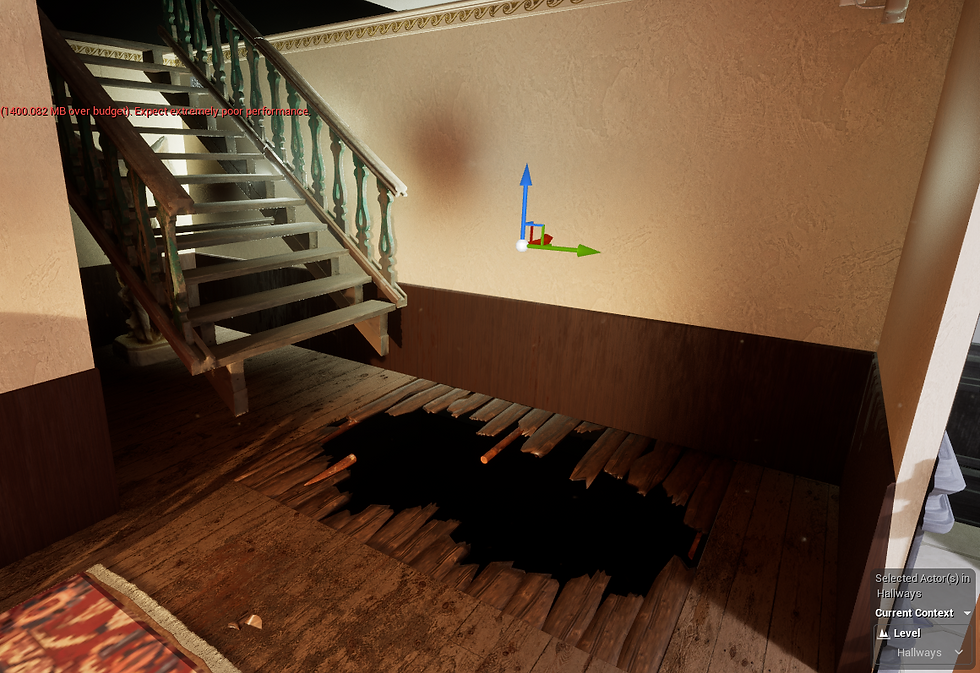 I textured the two headed calf and placed it into the scene as well as gave it a little platform to stand on. I started the process of making the broken staircase. There is a hole to the bottom and hole to the upstairs as well as actual wooden stairs. I color matched my assets to the floor texture I already had but I still need to do some blending work on it. I had screenshots but they somehow got lost even though I saw them in my drive before I left Monty. I will add them during class. I will have the environment finished by the end of this week and will begin editing.